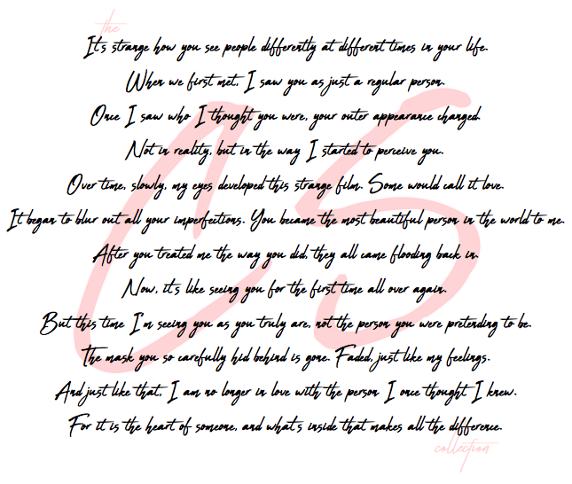 Poetry the heart of someone changes everything June 19, 2018by theCScollection Share Click to share on X (Opens in new window) X Click to share on Facebook (Opens in new window) Facebook Click to email a link to a friend (Opens in new window) Email Click to share on Pinterest (Opens in new window) Pinterest Like Loading... Related